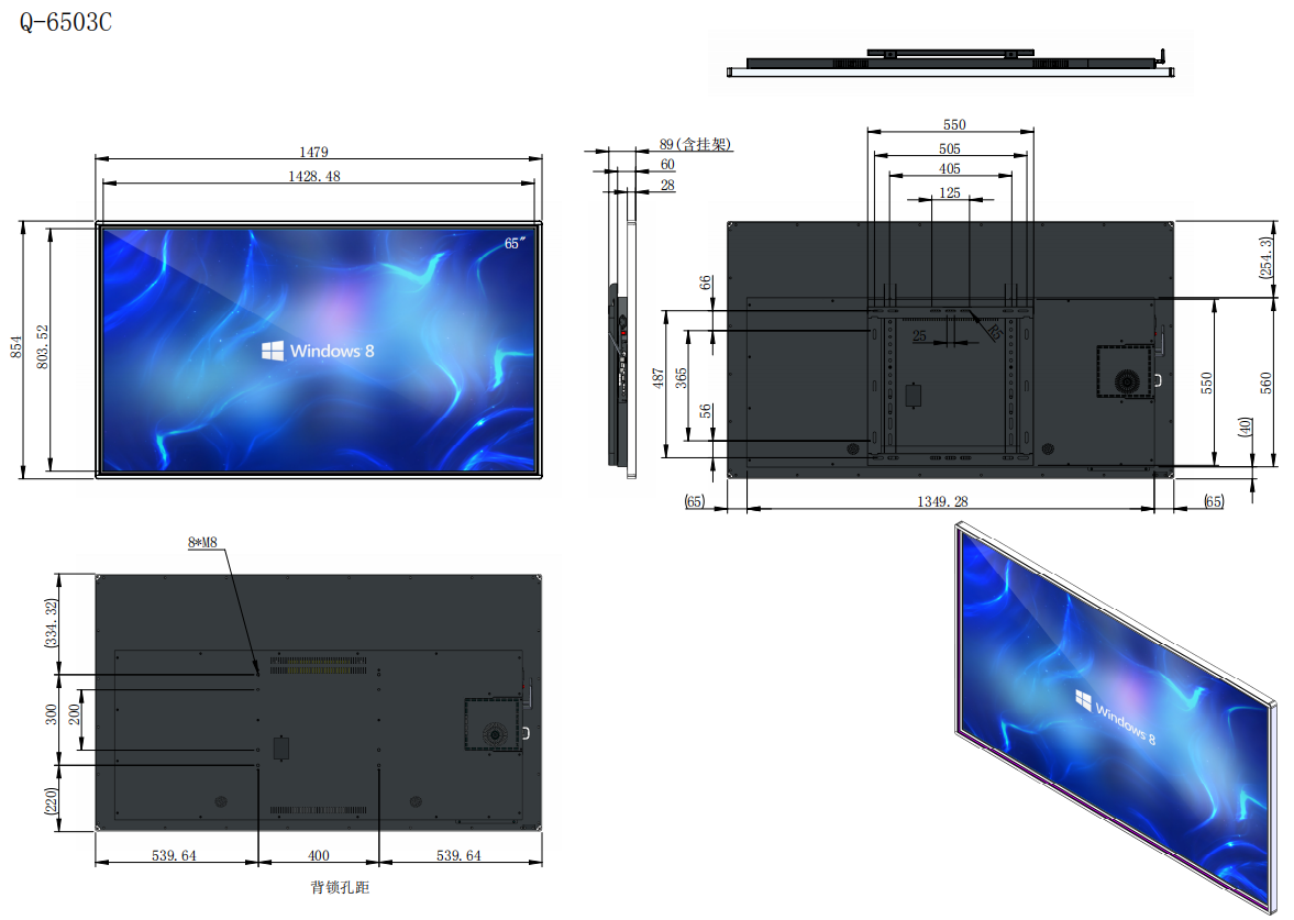 外观尺寸 | 749×444×82mm(长*高*厚含挂架) | 992×580×89mm(长*高*厚含挂架) | 1125×655×89mm(长*高*厚含挂架) | 1260×731×89mm(长*高*厚含挂架) | 1479×854×89mm(长*高*厚含挂架) |